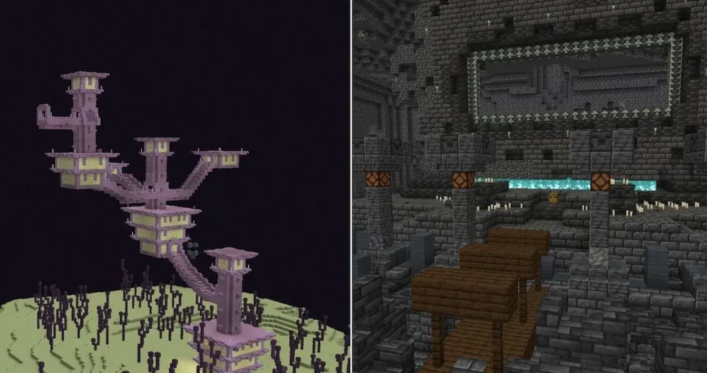 هر دو شهر در بازی ماینکرفت را میتوان در دو لحظه مختلف از بازی کاوش کرد.